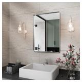 ***INCOMPLETE*** Silver Bathroom Mirror for Wall, 24x36 Inch Silver Framed Bathroom Vanity Mirror for Farmhouse Living Room Bedroom, Anti-Rust, Tempered Glass, Rounded Corner, Horizontal/Vertical