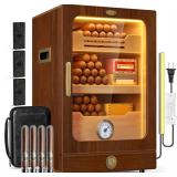 Cigar Humidor, Desktop Cigar Humidor Cabinet Light Control System with Spanish Cedar Wood Shelves, Hygrometer, 3 Humidifiers and Cigar Accessories Drawer, Father's Day Gift for Men (Brown)