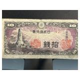 Japanese 10 Sen Banknote, Wartime Era |