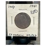 Italian 50 Lire Banknote, 1939 Issue |