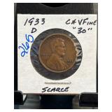 1933-D Lincoln Wheat Cent in CH-VF Condition |