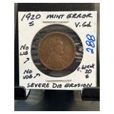 1920-S Lincoln Wheat Cent Mint Error Coin |