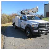 2014 Ram 5500 Bucket Truck - Versalift SST40EIH-01 - EH130213, 60' Workheight, Articulating, Insulated, Over-Center, Aerial Bucket with a Material Handler, 173,641 mi., 3,741 PTO, Regular Cab, Dual Rear Wheels, Diesel, Automatic Transmission, VIN #3C7WRMBL4EG165327, Dakota Bodies Inc. Serial No. 16789 Model No. 132-SB, Outriggers, Current ANSI, Dielectric and DOT Inspections, Fleet Maintained. Location: Canton, OH.