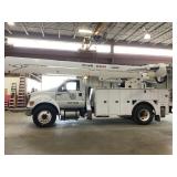 2015 Ford F-750 Heavy Duty Bucket Truck - Versalift VO460MHI, 60' Workheight, Articulating, Insulated, Over-Center, Aerial Bucket with a Material Handler, 77,005 mi., 5,152 PTO, Regular Cab, Dual Rear Wheels, Diesel, Automatic Transmission, VIN #3FRXF7FK2FV525336, Dakota Bodies Inc., Outriggers, Current ANSI, Dielectric and DOT Inspections, Fleet Maintained. Location: Goshen, IN.