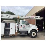 2015 Ford F-750 Heavy Duty Bucket Truck - Versalift VO360XMHI, 60' Workheight, Articulating, Insulated, Over-Center, Aerial Bucket with a Material Handler, 46,734 mi., 1,488 PTO, Regular Cab, Dual Rear Wheels, Diesel, Automatic Transmission, VIN #3FRXF7FK3FV740773, Dakota Bodies Inc., Outriggers, Current ANSI, Dielectric and DOT Inspections, Fleet Maintained. Location: Fort Worth, TX.