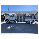 2014 Ford F-750 Heavy Duty Bucket Truck - Versalift VO460MHI, 60' Workheight, Articulating, Insulated, Over-Center, Aerial Bucket with a Material Handler, 84,629 mi., 2,243 PTO, Regular Cab, Dual Rear Wheels, Diesel, Automatic Transmission, VIN #FRXF7FK8FV525339, Dakota Bodies Inc., Outriggers, Current ANSI, Dielectric and DOT Inspections, Fleet Maintained. Location: Richmond, VA.