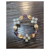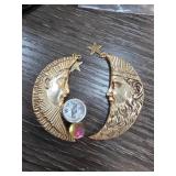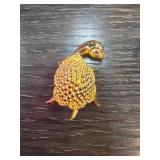 Gold-Tone Turtle-Shaped Brooch with Red Stone |