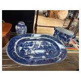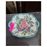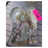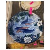 Decorative Blue Fan-Shaped Porcelain Plate |