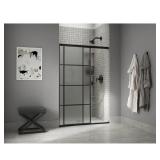 Elate Tall Sliding Shower Door, 75-1/2-In H X 44-1/4 - 47-5/8-In W, With Heavy 5/16-In Thick Frosted Glass With Rectangular Grille Pattern K-707613-8G80-BL