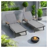 This 2-piece chaise lounge set is perfect for poolside relaxation or sunbathing on your patio. Made from powder-coated aluminum, these loungers are weather- and water-resistant, so they stand up to the elements. The teak armrests add a contrasting touch to the black metal frame. Each chair features four adjustable backrest positions, allowing you to recline completely flat or sit up to read. Plus, the back legs are equipped with wheels, making it easy to move them around wherever the sun goes. These chairs have a weight capacity of 350 lbs.