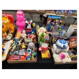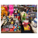 Vintage Toy Collection- Great selection of vintage toys incl. Star Wars items such as Nippet the Ewok and R2-D2 Plush with Tags, Wonder Woman toys, puzzles, yo-yos, Barbie, Kool-Aid Man display items, soda bottles with dragsters, and vintage plastic toys incl. Dukes of Hazzard car, Lone Ranger, Garfield the Cat plush and related items, Campbell’s advertising items, dolls and accessories, Buddy L Kitty Kennel, Topper toys, ashcans, Zoomer, Boomer, cars, and more.