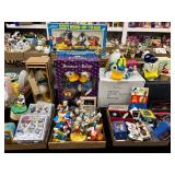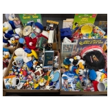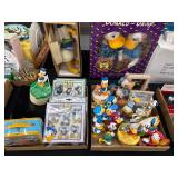 Also incl. Donald Duck jewelry, snow globes, wrist watches, ornaments, cookie jars, cups, plates, plush dolls, keychains, calendars, books, clocks, puppets, porcelain figures, hats, duck bowling sets, posters, mirrors, and more.