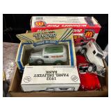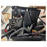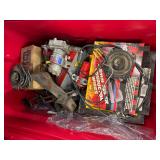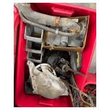 Automotive Parts & Components- Automotive items incl. Chevy engine, engine parts, wheels, radios and wiring, muffler clamps, suspension tools, magazines, lift tools, transmissions, chain hoists, Chevy transfer case parts, V8 cylinder heads, intake manifolds, ramps, manifold gasket sets, camshafts, truck frame, chrome piping, lighting, cab, truck bed, doors, fenders, mini tubs, rear axles, seating, mufflers, mirrors, truck hood, windows, miscellaneous parts, and much more.