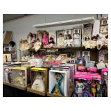 Barbie Incl. NIB The Phantom of The Opera Designed for F.A.O Schwarz, NIB The Adams Family Gift Set, NIB Bob Mackie Fantasy Goddess of Asia, NIB Rose from The Titanic, NIB Cher Timeless Treasures , NIB Jessica Rabbit by Disney, 3 NIB Dolly Parton Dolls 1996 (Goldberger Doll Company), 2 NIB Large Dolly Parton Dolls ( Goldberger Doll Company) #5890 \ #5892, NIB The Nanny 1995 ( Street Players), NIB Fonzie ( Premiere 1997), NIB Princess Diana Queen of People’s Hearts 1997 ( Street Players), NIB 1977 Suntan Tuesday Taylor & Her Suntan Doodles ( Ideal), NIB 1997 I Dream Of Jeanie Fashion Doll episode 124 “The Wedding “ ( Trend Masters), NIB Radio City Christmas Spectacular #93544 (Radio City Entertainment), NIB 1998 Audrey Hepburn as Holly Golightly # 20355 #20665 by Mattel, NIB Grease Sandy # C 4773 # B2510, NIB All My Children Erika Kane 1999 and Champagne Lace Wedding, NIB Elizabeth Taylor In Father Of The Bride 2000 , NIB 2008 Elvis & Priscilla ( Pink Label) by Mattel, NIB Barbie Loves Elvis #17450, NIB 1984 Elvis by Graceland, NIB Special Edition Christened Barbies 1989, 1997, 2000. NIB Barbie As Dans LE Role DE ALS Empress - Kaiserin / Sissy Imperatrice, NIB Classic Collection Benefit Ball Barbie, NIB Angels Of Music Heartstring Angel Barbie, NIB Statue Of Liberty Barbie, NIB Astronaut Barbie, NIB Hot Skating Barbie Barbie, NIB Polly pocket Whitney, NIB Barbie Clothes & Accessories.