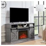 Farmhouse Grey Fireplace TV Console – Rustic Storage & Cozy Ambiance | Entertainment Furniture | Trufairs (FIREPLACE INCLUDED)