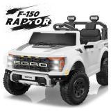 24V Ride on Cars 2 Seater for Kids, Ford F150 Raptor Battery Powered Ride on Toys Truck with Remote Control, 4 Wheels Spring Suspension, Electric Car for Kids Toddler 3-8 w/Bluetooth & Lights, White