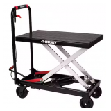 - A rubber mat lines the top of the lifting cart for enhanced grip and easy cleaning. A foot pump provides easy lifting of the table and brakes on the rear casters provide optimal movement. The Husky Hydraulic Lift Table Cart is a must for any auto enthusiast and is the perfect addition to any garage.