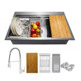 Handmade All-in-One Topmount Stainless Steel 33 in. X 22 in. Single Bowl Kitchen Sink W/ Spring Neck Faucet, Accessory