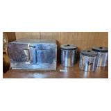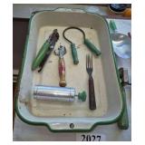 2002 Plastic oval distressed mirror 2003 Glass vases, pitchers, inkwell, napkin rings, Etc 2004 Maple? Bookshelf with glass top protector 2005 Women's coats, jackets, vests, fleece jackets, jean jackets 2006 2 stackable laminate shelf units 2007 Magic wand portable handheld scanner sealed in box, xyron model 510 laminator, sticker/ label/magnet maker 2008 Antique or vintage black velvet coat 2009 Cups and saucers 2010 Ottlite 508 crafting light with magnifier unused in box 2011 Two framed prints 2012 Hats, ear muffs, NWT Charter Club hat/scarf set 2013 Dog figurines 2014 Gold frame oval mirror 2015 Vivitar 7x35 binoculars, vintage field glasses in case 2016 Carhartt overalls, black suede chaps with fringe 2017 Artist signed fox photograph, framed photograph, wall hanging on canvas 2018 Women's gloves 2019 HP PhotoSmart A637 printer sealed in box 2020 Wall hangings, framed swan photograph 2021 Wallace Silversmiths flatware chest new in box, misc. Stainless flatware 2022 Women's winter coats, leather coats and jacket, Lawrence Kazan sequin black jacket, London Fog trench coat, Etc 2023 Large lot of silverplate flatware 2024 Women's scarves including Pashminas 2025 Hanging longhorn horns 2026 Green Avon glassware, jadeite saucer 2027 Kitchen primitives, graniteware pan 2028 Antique Bendix bakelite case radio 2029 Crystal and heavy glass bowls, vase, platter, canning and other jars 2030 Dual cupboard cabinet 2031 Fellowes paper shredder, working 2032 Pyrex mixing bowls, Cinderella divided baking dish, two vintage refrigerator dishes 2033 Hanging wood shelf with pegs and heart cutout 2034 Robinson Ransbottom pottery bowls and cups 2035 3 pedestal cake/pie plates 2036 Wall hanging decor 2037 White corningware baking dishes with some lids, 2 round Pyrex baking dishes with lids 2038 Colored glass vases, bottle, planter, mini hens on nest 2039 Graniteware pans, pots, dishes, canister set, bowls 2040 Decorative Artificial food, glass bowl, ceramic pedestal pie plate, enamelware collandar 2041 Kitchen utensils in crock 2042 Glass vase, pitchers, bowls, coasters, butter dish, tray, Etc 2043 Keurig model K1500 2044 Coffee and Tea Mugs, Corelle and other bowls, kids bowls, plastic glasses 2045 Ceramic pitchers, utensil holders, cow planter 2046 Three vintage sandwich griddles/presses 2047 Pyrex measuring cup, Federal Glass and Libby measuring glasses, Gemco measuring glass, measure n pour, mini measure glasses 2048 Variety of flatware, serving utensils, metal fly can opener, Etc 2049 Stoneware mixing bowl, Texasware, grapefruit reamer/bowl set, jadeite coffee canister, vintage juice bottle, vintage wood recipe holder 2050 Krups 4 slice bagel toaster, working 2051 Three covered glass canisters 2052 Cast iron skillet, griddle, and cornbread skillet 2053 Pier 1 nesting bowls, Shenango China dinner and salad plates, white Cashmere China plates, bowls,j and cups and saucers 2054 Two Stanley 1.1 quart thermoses 2055 Vintage Oster Regency blender and meat grinder, rival can-o-matic can opener, Daisy stripper, Argus Le slow juicer 2056 Carnival Glass Drinking glasses, mid-century stems, rocks glasses, Tang glass, small jelly jars no lids, Starbucks thermos, water cup with lid and reusable straw, Etc 2057 Cast iron corn cob pan, tartlet mold pan 2058 Kitchen supplies, utensils, measuring spoons, cheese cutting boards, Etc 2059 Glass water, milk, Pharmacy, kitchen, and other bottles, Green Glass wine decanter? 2060 Stainless steel pots and pans, pressure cooker, enamelware pot, Copper saute pan, Etc 2061 Commercial Vitamix 2200 Sidewinder, vintage Universal coffee-matic, Oster mixer, Chopper 2062 Tupperware and other plastic bowls and Storage containers, Etc 2063 Pattern glass butter dishes, toothpicks, vases 2064 CorningWare baking dishes, bowls, pie plate, vintage pie plates, Etc 2065 Tiffany style Stained Glass Lamp with plastic shade 2066 Junk drawer items including tools, rope, box cutters, long stick matches, rulers, hardware, batteries, Etc 2067 Cookbooks, recipe boxes, cookbook holder 2068 Ainsley, coalport, other blue and white and gold cups and saucers, plate, creamer, Bowl 2069 Vintage and contemporary kitchen towels and napkins, hot pads 2070 Various glass and crystal stemware including Lenox, Gorham, Noritake, Etc 2071 Pier 1 ceramic dinner plates, salad plates, salad set, and mugs, coasters 2072 Vintage refrigerator dishes, enamelware baking dish and bowls, green reamer 2073 Vintage rooster wood and cork hot pads, tile trivets, cast iron Turtle and brass Christmas trivets, marble pastry board, knives, cookie cutters, vintage egg beaters, Etc 2074 Theodore Haviland Limoges pink rose pattern China 2075 Sterilite 5 drawer organizer, packages of pencils, magnifying glasses, letter openers, Anna Griffin spellbinders tool n one, Etc 2076 Craftsman 3/8" drill driver, California Car Duster kit, level, pry bar, Square, portable work light, Craftsman measuring tape 2077 Salt and pepper shakers 2078 LG microwave 2079 Edelstein Bavaria Maria-Theresia German Florence set of China 2080 Yardsticks, rug beater, Toas-tite, wood hanging paddle, glass washboard 2081 Resin rooster statue, rooster salad plates, mini metal chicken, rooster tile trivets 2082 Two dog tie outs, pet bowls, leash 2083 Glass vases 2084 Blue, white, and gold China plates, bowls, tea pot, tea cup and saucer set, covered dish? 2085 3 plug in portable heaters 2086 Bunny plates and mugs, carrot beaded and sequined Runner with napkin rings, carrot salt and pepper shakers and measuring cups, ceramic sheep, bunny coin Bank, duck and rabbit metal leaner stands, Etc 2087 Pyrex and other glass baking dishes and Pie plates, roasting pan, stainless steel bowls, cooling rack, Etc 2088 Longaberger bread basket with ceramic bread warmer, 3 loaves of artificial decorative bread 2089 Silver plate flatware, serving fork, jar lid 2090 Pottery and ceramic planters, vases, pitcher, Flower Frog vase, plate, rooster Bowl, crock, Etc 2091 Wood quote wall decor, wood