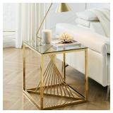 Lot - 5 (102). 20" Clear Glass End Table, Modern Square Couch Sofa Side Table Accent Bedside Table with Metal Frame, Abstract Night Table for Living Room, Bedroom, Gold End Table