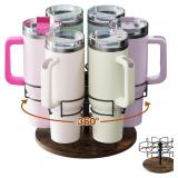 • 【𝗥𝗼𝘁𝗮𝘁𝗮𝗯𝗹𝗲 𝗗𝗲𝘀𝗶𝗴𝗻】 With its unique rotatable design, the stanley cup organizer makes it easy to get your drinkware by simply rotating the 6-ring cup holder. Whether you store it in a cupboard or on your kitchen counter, this practical glass organiser ensures quick and easy access to your favourite cups.