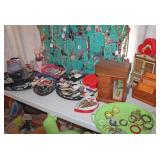 Antiques & collectibles Many vintage & retro goods Lots of wall decor Hand painted Mexican lawn ornaments Glassware Crystal China Art glass Several commercial “METRO” racks Many side & end tables Assorted plant stands Floor rugs Vintage prints Retro barware Vintage lamps Vintage Enid Collins “Milles Fleurs” purse Oak jewelry armoire cabinet Pair of Art Deco glass & brass wall sconces Costume jewelry Jewelry boxes Wall shelves Antique Art Deco mantle clock from Germany Frosted glass curio cabinet-small Wood carvings Several antique trunks Mahogany quilt rack Afghans, vintage quilts Vintage Charlie Weaver Bartender toy Collection of hand-painted porcelain masks Vintage S&P shakers Lots of knick-knacks Many “Kitschy” items Many figurines Brass items Marilyn Monroe cookie jar Very nice skinny cherry curio cabinet w/ brass dog heads Cast iron turtle string holder Retro ashtrays Wind chimes Modern pine small cabinet Hall’s Jewel Tea “Autumn Leaf” Aladdin teapot Lots of retro wall decor Vintage chalkware Nice mahogany tombstone top curio cabinet-small Betty Boop items Milk glass nesting hen Antique gold eye glasses Antique quarter-sawn round oak table Several small painted cabinets Several original signed paintings Antique Art Deco maple buffet Several antique porcelain top kitchen tables Antique painted buffet Assorted framed wall mirrors-some large Antique 1920’s maple corner china cabinet Antique “Shabby Chic” painted chest of drawers Antique Art Deco cedar chest “Boho” cane rocking chair “Broyhill” light pine dresser w/ mirror MCM signed Sebet wall mirror Retro hampers Antique 1920’s French bed frame w/ mattress & box springs (2) wooden rocking horses Modern oak dining table & chairs set Vintage ornate gilt framed mirror Antique “Newberry’s Bread and Cake Cabinet” Antique porcelain top Hoosier kitchen cabinet Vintage Sunbeam “MixMaster” stand mixer Pyrex, Corelle & Corning Ware Kitchen wares Bunn commercial coffee machine Upright freezer Washer & dryer Refrigerator Assorted yard tools Lots of hardware Lawn chairs Hand saws Small tool boxes Come-a-long Levels Several commercial stainless steel restaurant work tables Chemicals Bumper jack Like new commercial Hotsy pressure washer Shop cabinets Wheelchair Jack stands Large amount of yard art Lots of planters Concrete birdbaths Concrete lawn ornaments Weathervanes Shepherd’s hooks Wrought iron outdoor furniture Decorative fencing Rubbermaid trough Antique chandelier Shop vac MCM dining table & chairs set Books Cutting torch set Graco paint sprayer Upright shop air compressor Several antique fireplane mantles Outdoor metal swing True Temper wheelbarrow BBQ grills Large teak deck box Office chairs Lots of children’s toys-some vintage King sized metal bed frame Electronics Computer equipment Complete commercial security system Upholstered furniture New, never used hospital bed Clothing rack w/ clothing Nice coats Baskets Puzzles Lots of Christmas & holiday decor Tons of home decor Lots of miscellaneous Household goods & MUCH MORE!
