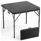 VINGLI 34" Fold in Half Square Table, Bi-Folding Commercial Table, Portable Plastic Dining Card Table for Kitchen or Outdoor Party Wedding Event, Black