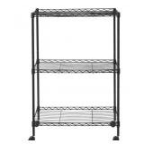 3-Shelf Rolling Cart, Garage Kitchen Storage Rack with Locking Wheels, 20"W x 10"D x 28"H, Black