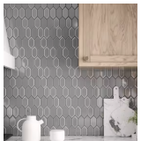 (190) ***2 Case***Caldera Charcoal 10 in. x 13 in. Hexagon Gloss Glass Mosaic Wall Tile (13.53 sq. ft./Case)