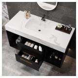 ***INCOMPLETE*** Glintee 40" Modern Floating Bathroom Vanity with Ceramic Sink, Sintered Stone Top, Solid Wood Cabinet - 2 Drawers & 2 Open Shelves, Easy Assembly, Black