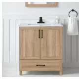 - Luxurious Sintered Stone Top & Ceramic Sink: This bathroom vanity features a premium sintered stone countertop with elegant marble grain and a durable ceramic sink for long-lasting beauty and functionality.