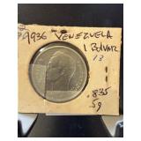 1936 Venezuela 1 Bolivar Coin in Holder |