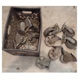 8 Cast Iron Swivel Casters w/ Wire Milk Crate & Dolly