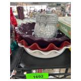 Red and White Ceramic Pie Dishes With Glass Jar |