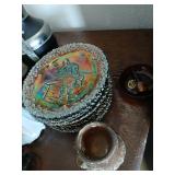 • ANTIQUES & COLLECTABLES • Seth Thomas wind-up clock * 2-gal wooden hand crank churn * fainting couch * Serpentine front small desk * (3) old oil lamps * 1950's metal bread box * 1940's couch & chair * baby bassinet * (2) Aladdin electric lamps * die cast truck banks * (2) 1965 World’s Fair Jim Beam decanters * (2) Hess rescue trucks * Hero harmonica * (6) implement wheels * Drexel mahogany curved glass hutch, dining table & chairs, sideboard - all matching * Hanson Model 60 dairy scales * Coke bottle radio * signed Indian pictures * cherry locking 6' 2-door curio w/drawer & top crown * empire dresser w/mirror * Alvarez flat-top guitar in case model 5065 * tall heavily carved plant stand * marble top carved sofa table * mahogany leather-top lamp table * Aunt Jemima shakers * 3-tier mahogany pie crust table * Pee Wee Herman doll * footed cast iron pot w/lid, bail & chicken fryer * Community flatware in case * small set of Purina scales * whiskey crock * Dazey churn top * red 3-tier kitchen cart * lots of red & green handle kitchen utensils * Hoosier style kitchen cart * spice sets * porcelain top kitchen cabinet * red & green handle dough rollers * 1970 Coleman lantern * • GLASSWARE • approx. (50) pieces of old carnival glass: Fenton oval bowl, Imperial 12" vase, lattice grape cups, leaf & beads bowl, tall carnival pitcher, mugs, Northwood fluted bowl, grape lotus bowl, butterfly bowl, large fluted tree bowl & others * Jadeite saucers & bowls * peach luster pieces * green oatmeal glasses & custards * palm tree Japan dinnerware * lots of clear sandwich glass * Fire King white swirl dinnerware * thistle butter * hummingbird figures * old syrup pitchers * Denim Days figures * lady planters * chicken dinnerware, pitchers & glasses * green Pyrex bowl * Pillsbury cookie jar & others * crock chicken bowls * measuring pitchers * Corning * large buffalo china dish set * pig & rabbit figures * Shawnee king corn pitchers * RS Prussia hat pin holder w/ hat pins * Royal Copley chickens * old Roseville pottery: 72-6 vase, 464-6 bowl Freesia, 117-6 vase, 6" Freesia bowl, 463-5 Freesia bowl, 441-10 bowl, 72-6 vase * (2) Longaberger water pitchers & others * Frankhoma water pitcher & plates * pink crock pitcher * Amberina basket * ruby red glasses * Marcrest pitchers * (3) hen-on-nest * Red Wing set: cream & sugar, teapot pitcher, casserole, salt & pepper, (6) plates * decanter & glasses * set of Ivory Mikasa dinnerware * Baum Bros. lady figures * • HOUSEHOLD • Baby Lock 5500 quilting machine with extra bobbins & feet * Queen Anne wingback chair * pine wall shelf * mahogany 7' tall bookcase * mahogany 6' tall 2' wide bookcase * 3-tier book shelf * painted white coffee table * magazine rack * maple 2-tier shelf * Red Star knives in set * pine side table * white clad microwave cart w/Coke opener * Kitchen Aid food processor * Panasonic 50" tv * stereos * large leopard picture * • MISC. • small guitar amp * misc. tools * nice empty guitar case * puzzles * games * 1/2" air tool set * Craftsman garage door opener * electricians fold-out tool case * |