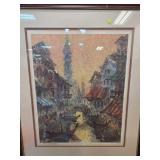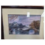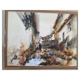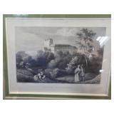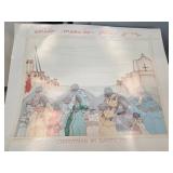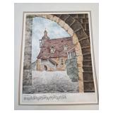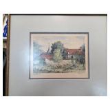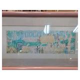 Hand-Colored Lithograph Village Scene Signed |