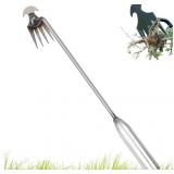 Garden Weed Pulling Tool, Manual Weeder Tool, Weed Removal Tool Long Handle, 4 Teeth Manganese Steel Garden Weed Pulling Tool, Uprooting Weeding Tool for Lawn and Garden (19.7in-Sliver)