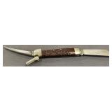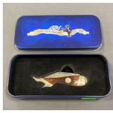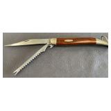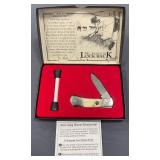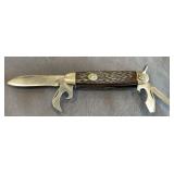 Bid now through, Thursday, January 29, 2026 - Lots begin closing at 7 pmPickup for items will be the next day, Friday, January 30th in the afternoon, with the exact details to be in your winning invoice!LOCATED AT: 1582 W. State Road 114, North Manchester, IN 46962This auction will not have sales tax but will have a 10% Buyer's Premium added to your winning invoiceBID NOW AT BIDMETZGER.COMLot #s & Descriptions: 1000 Parker USA Lock Back Single Blade Pocket Knife with Dog Bone sharpener in Original Box - 1.5” Blade 1001 Camillus Cutlery Co. Stainless Spike/Sailor Double Blade Knife in Original Box - 2.5” Blade 1002 Colt 175th Anniversary Red/Brown Bone Handle Single Blade Lady Leg Folding Knife CT370 in Original tin - 2” Blade 1003 1988 W.R. Case & Sons Cutlery Co. XX Buffalo Single Blade Lock Knife P172, made in USA with Wood Storage Box & Original Box - 4” Blade 1004 Motorcycle Shaped Collectible Single Blade Pocket Knife in Case with Stainless 2” Blade 1005 John Wayne Movie Collectibles “Classic Westerns #3” 2pc Single Blade Pocket Knife Set (2”-2.5” Blades) 1006 Marilyn Monroe Collectible Single Blade Pocket Knife in Box with Stainless 2.5” Blade 1007 Barlow 7pc Stainless Steel Tool kit in Zipped Red Case - Made in Japan, 4”-3.5”L 1008 Schrade Cutlery Uncle Henry LB8 Papa Bear Lock Back Knife Sheath in Original Box (no Knife included, Sheath only) 5.5”L 1009 1988 W.R. Case & Sons Cutlery Co. Carved Handle Single Blade Pocket Knife C61050SAB in Original Box - 3.5” Blade 1010 1990 Remington Arms Co. Commemorative Shotgun Single Blade Knife “11-87 Auto 870 Pump” with Original Box - 3.5” Blade 1011 1994 Remington Limited Edition R4243 Camp Bullet 3 Blade/1Tool Knife in Original Packaging - Blades measure 3.5”-2” 1012 1996 Remington Limited Edition R3843 TrailHand Bullet 3 Blade/1 Tool Knife in Original Packaging - Blades measure 2.5”-1.5” 1013 Schrade Cutlery Co. Uncle Henry Triple Blade Pocket Knife USA 897UH in Original Packaging - Blades measure 2.5”-1.5” 1014 6 Small Pocket Knives inc. Miller Bros USA, Rotary International, Victoria & 3 monogram Engraved Pocket Knives - Blades measure 1.5” 1015 Schrade Uncle Henry 227UH Double Blade Knife with Leather Sheath - Blades measure 3.5” 1016 Frost Cutlery Folding Single Blade Pocket Knife with Carved Antler/Bone Handle, Velcro Case & 4” Blade 1017 Schrade-Walden NY USA 250T “Old Timer” Double Blade Knife with Engraved Leather Sheath, Blades measure 3.5” 1018 Camillus New York USA Carved Handle Single Blade Pocket Knife with Sheath & 3.5” Blade 1019 Sheffield Single Blade Pocket Knife with Sheath & Stainless 3.5” Blade 1020 Camillus New York USA “16” Double Blade Pocket Knife with Sheath - Blades measure 2.5”-1.5” 1021 Winchester Carved Handle Double Blade Knife 4660514A with Velcro Sheath - Blades measure 3”-2.5” 1022 Sabre 648 Single Blade Pocket Knife with Engraved Leather Sheath & 3” Blade 1023 Sabre Camper’s Single Blade/Multi-Tool Knife made in Ireland, Blade Engraved “Sherry Horless”, with Black Sheath, Blade measures 2.5” 1024 Western W49 Bowie Style Knife with Sheath, 9” Blade 1025 Hunting Knife with Sheath, 7” Blade 1026 Military Style Knife made in Taiwan with Plastic compass Handle & camouflage Sheath, Blade measures 6” 1027 Case XX razor edge 3 Finn SSP Fixed Blade Knife with Sheath, 4.5” Blade 1028 Case XX 366 Fixed Blade Knife with Sheath, 4” Blade 1029 Case XX 315 Fixed Blade Knife with Sheath, 4” Blade 1030 Case XX Butcher Knife with Wood Handle & 7” Blade 1031 Valor #175-L8 Stainless Steel camping/Multi Tool with Two Blades measuring 3”-1.5”, some Tools stuck shut 1032 Stainless Steel Camping/Multi Tool with 3 Blades measuring 3”-1.5”, some Tools stuck shut 1033 Stainless Steel camping/Multi Tool made in Japan with Sheath & 3 Blades measuring 3”-1.5” 1034 Queen Stainless Triple Blade Pocket Knife - Blades measure 1.5” 1035 Hand crafted Star “Old Soldier” 3340 440 Stainless Knife with Carved Wood Handle, 4” Blade 1036 Jowika Republic Ireland camper’s Knife with Carved Bone/Antler Handle, 2.5” Blade 1037 Anvil honed edge Triple Blade Pocket Knife - Blades measure 2.5”-1.5” 1038 Buck 110 USA Wood Handled Single Blade Pocket Knife, 3” Blade 1039 Schrade Uncle Henry 227UH USA Double Blade Knife with Bone/Antler Carved Handle - Blades measure 3.5” 1040 Sabre Single Blade Pocket Knife with Bone/Antler Carved Handle - made in Japan, 3.5” Blade 1041 Wood Handled curved Single Blade Pocket Knife “645” with 2.5” Blade 1042 Robeson ShuRedge 922487 Wood Handled Pocket Knife/Multi Tool, 3.5” Blade 1043 Solingen Bear Hunter Stainless 440 Double Blade Pocket Knife with white Handle - Blades measure 3.5” 1044 Sabre 668 duck Hunt Handle Design Pocket Knife with Stainless 3” Blade, made in Hong Kong 1045 Klein Tools R-3 Double Blade Knife, 2” Blades 1046 Ric-nor Co. Double Blade Knife with Resin Handle - Made in Boston USA, 2.5” Blades, Engraved G.S. on One Blade 1047 Boker Tree Brand 5464 four Blade Pocket Knife - Made in Solingen Germany, Blades measure 2”-1.5”, missing Emblem on Handle 1048 Mickey Mantle Collectible Bear Hunter Surgical Steel Single Blade Pocket Knife, 2.5” Blade, made in Pakistan 1049 Elanco Treflan Schrade Walden N.Y. USA 175 Single Blade Pocket Knife - 2.5” Blade 1050 Unmarked Double Bladed Pocket Knife/Multi Tool, Blades measure 2.5”-1” 1051 Case 640045 R USA Folding Pocket Knife/Multi Tool, Two Tools stuck inside, 2.5” Blade 1052 Sabre 667 Fisherman Design Single Blade Handle Pocket Knife, made in Hong Kong, Stainless Blade measures,2” 1053 Van Camp H.&I. Co. Double Blade Carved Handle Pocket Knife made in Indianapolis, Blades measure, 2”-1.5”, 1054 Stainless Steel Pocket Knife Multi Tool with file & retractable tape measure, made in Japan, Blade measures 1.5” 1055 H. Boker & Co. Solingen Germany Tree Brand Double Blade Pocket Knife, Blades measure, 2.