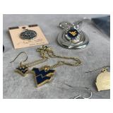 Jewelry Partial List: 14K Gold Diamond Tennis Bracelet, 14K Gold Bangle Bracelet w/ Blue Stones & Diamonds, 18K Gold Ring w/ Blue Stone & Diamonds, 14K Gold & Onyx Earring & Necklace Set, 14K Gold Necklace & Pendant w/ Blue Stone & Diamonds, 8K Gold Necklace & Earring Set, 18K White Gold Diamond Pendant Necklace, 14K Gold & Diamond Pendant Necklace, 14K Gold Diamond Cut Chain & Cross, 14K White Gold Ring, 14K Gold Blue Stone & Diamonds Ring, 14K Gold Charm Bracelet, 14K Gold Indy Star & Diamonds Ring, 14K Gold Bracelet & Ring Set, 14K Gold Diamond Necklace, 14K Gold Box Chain & Diamond Pendant, 14K Rings & Bracelets, 14K Double Heart Pendant Necklace, 14K White Gold Pendant Necklace, 10K Gold Mesh Bracelet, 14K Gold Diamond Earrings & Pendant, 10K Gold Box Chain & Opal Pendant, 10K Gold Ring w/ Diamond Accents, Gold Pendants & Earrings, Men’s & Ladies Watches, 925 Sterling Necklace & Bracelet, Sterling Heart Locket Necklace, Sterling Bracelets, Pendants, Necklaces, & Earrings, Sterling Rings, Dakota Angler Watch & Compass, Boxed Jewelry, Costume Jewelry