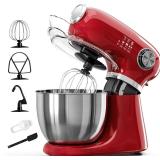 Kismile 5.5QT Tilt-Head Stand Mixer, 12-Speed Electric Kitchen Mixer with 304 Stainless Steel Bowl - Includes Dough Hook, Whisk, Beater for Baking Bread, Cakes, Cookies(Bright Red)