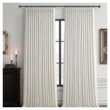 100% Blackout Linen 96 Inch Curtains 2 Panel Set for Bedroom, Modern Pinch Pleated Natural Linen Off Beige White Insulated Heavy Curtain 52 x 96 Inches Length Sliding Glass