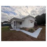 This well maintained mobile home offers 912+/- square feet of living area, plus additions and upgrades, and features three bedrooms and one bathroom on a partially fenced double lot with no HOA. The property presents a sweat-equity opportunity, needing a little cosmetic love while offering strong upside for investors, owner-occupants, or buyers seeking a starter home, retirement residence, or seasonal Florida snowbird retreat. The functional layout includes a primary bedroom with a walk-in closet and a bathroom accessible from both the primary suite and the hallway, along with two additional bedrooms with closets, a separate dining room, and a spacious living area. Interior features include cathedral ceilings, creative step-up flooring, and built-in shelving. A dedicated laundry room with washer and dryer hookups and a utility sink provides one of three entrances/exits. Other amenities include a front patio, wooden back porch off the kitchen, grass RV parking with power and water hookups, a powered workshop, two additional storage sheds, backyard power, and water spigots throughout the property. Conveniently located with easy access to Ocala, Inverness, and the Central Ridge area for retail, medical, and dining options, this property offers a great investment opportunity with flexibility, utility, and outdoor space. Property #: DG26003
