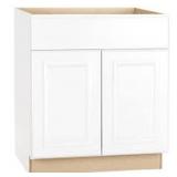 Hampton Bay Shaker 36 in. W x 24 in. D x 34.5 in. H Assembled Sink Base Cabinet in Satin White