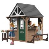 MSRP $439.99 [Beautiful And Durable]: The children's outdoor playhouse is made of high-quality fir wood, and its natural, warm tones and unique grain patterns will create a beautiful and attractive kid's play space that will add brilliance to the backyard. Known for its resilience, cedar wood is naturally resistant to decay and harsh weather, ensuring a lasting and safe environment for your children to enjoy for years to come. [Versatile Design]: The outdoor playhouse for kids is designed to inspire imagination and foster creativity with a sink, stove, kitchenware, chalkboard, bench, fence, and even a clock. Whether cooking a gourmet meal in your own kitchenette, drawing a masterpiece on the chalkboard, or learning to tell time, this versatile playhouse will provide a rich interactive experience for kids to dream big and enjoy countless hours of creative fun. [Realistic House Design]: This wooden outside playhouse can help children develop social and emotional skills. This charming playhouse features a hinged door, a working doorbell, flowerpot holders, a chimney, and a serving station. It's the perfect setting for imaginative play, where kids can engage in role-playing activities, develop friendships, and learn essential social skills like sharing and cooperation. [Spacious Interior]: Seizeen kids playhouse is sturdy and can be placed in any size outdoor or indoor area. Assembled dimensions: 63"H x 65.4"W x 67.3"D. Its ample space encourages group play and promotes social interaction and teamwork. Whether in the backyard or the living room, this playhouse becomes a magical world where children can explore their creativity and make lasting memories.