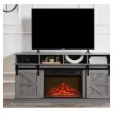 Modern Farmhouse TV Media Stand, Large Barn Inspired Home Entertainment Console, with 23" Fireplace Insert, for TV Up to 65'', with Open Shelves and Closed Cabinets, Grey