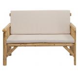 About This Product The entire loveseat is made of fir and paired with beige cushions, presenting a simple and elegant look. The cover of the cushion has a certain water resistance (but cannot be completely waterproof).The ergonomically designed seats offer you a comfortable and relaxing experience. Fir has excellent durability and stability. Each round bar that makes up the frame has been grooved, which largely avoids cracking. You can place it in any scene, whether indoors or outdoors.