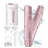 Akunbem Bikini Trimmer for Women - 2 in 1 Electric Razors for Women - Dual Head Electric Shaver - IPX7 Waterproof Wet & Dry Use Body Hair Trimmer and Facial Hair Remover for Bikini Underarm Leg Arm