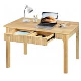 YEXINGlow 47.2'' Solid Wood Desk with 2 Drawers, Mid Century Modern Home Writing Office Wooden Desk,Vintage Computer Table with Storage for Living Room, Bedroom, Fluted Design (Natural, 47.2 Inch)