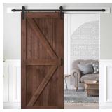 ROYMELO 36x84 inch Sliding Barn Wood Door Slab with 6.6ft Hardware Kit and Handle, Coffee, K Shape, Simple DIY Assembly
