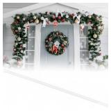 Blulu Extra Long. Garland Hanger for Front Door Frame Adjustable Garland Wreath Hanger for Christmas New Year Decorations Different Door Window Widths Decor, No Nails Screws(White)